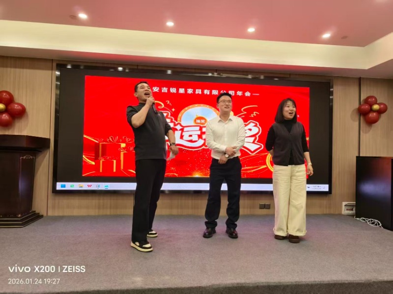 24 Ocak 2026'da, Anji Ruixing Mobilya Yıllık toplantısını, şirket yöneticilerinin ve yönetiminin geçen yılın başarılarını kutlamak ve gelecek hedeflerini tartışmak için bir araya geldiği prestijli Anji Borui Otel'de gerçekleştirdi. Etkinlik heyecan, dostluk ve olağanüstü katkılardan dolayı takdirle doluydu.